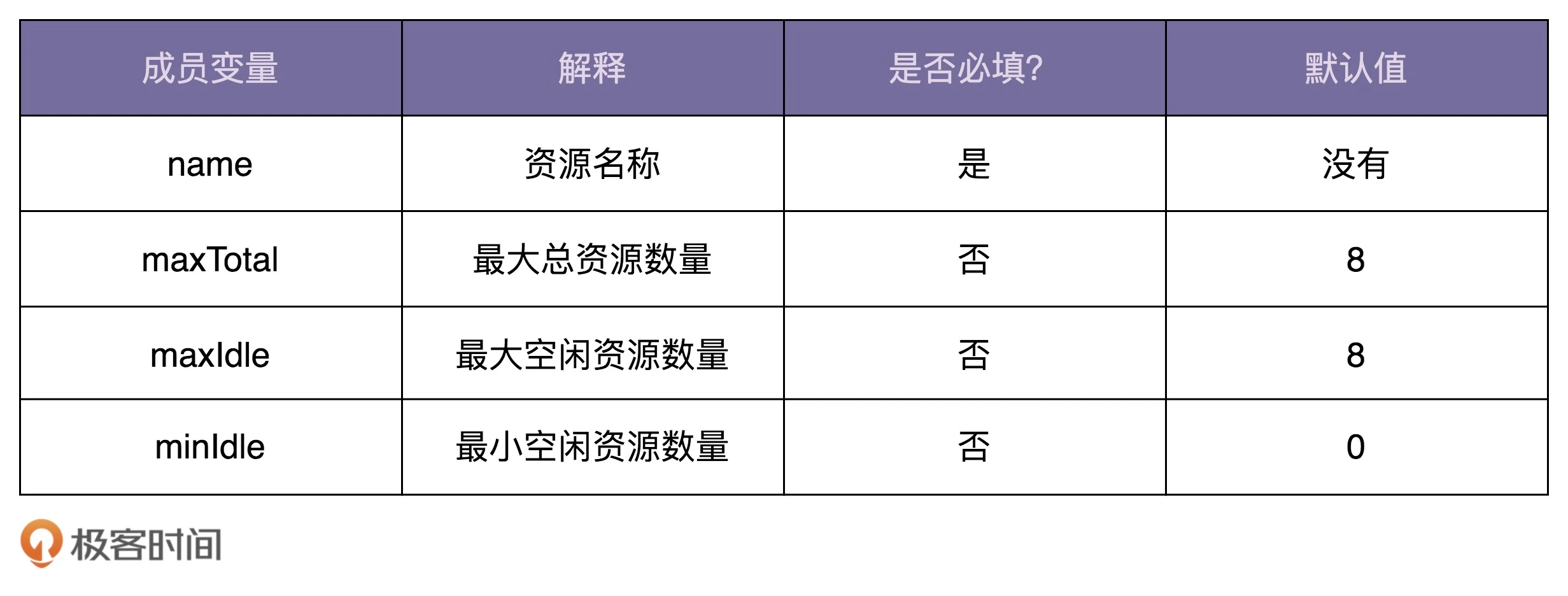 我们来看新的 ResourcePoolConfig 类该如何使用。我写了一个示例代码,如下所示。没有了冗长的函数调用和参数列表,代码在可读性和易用性上提高了很多。