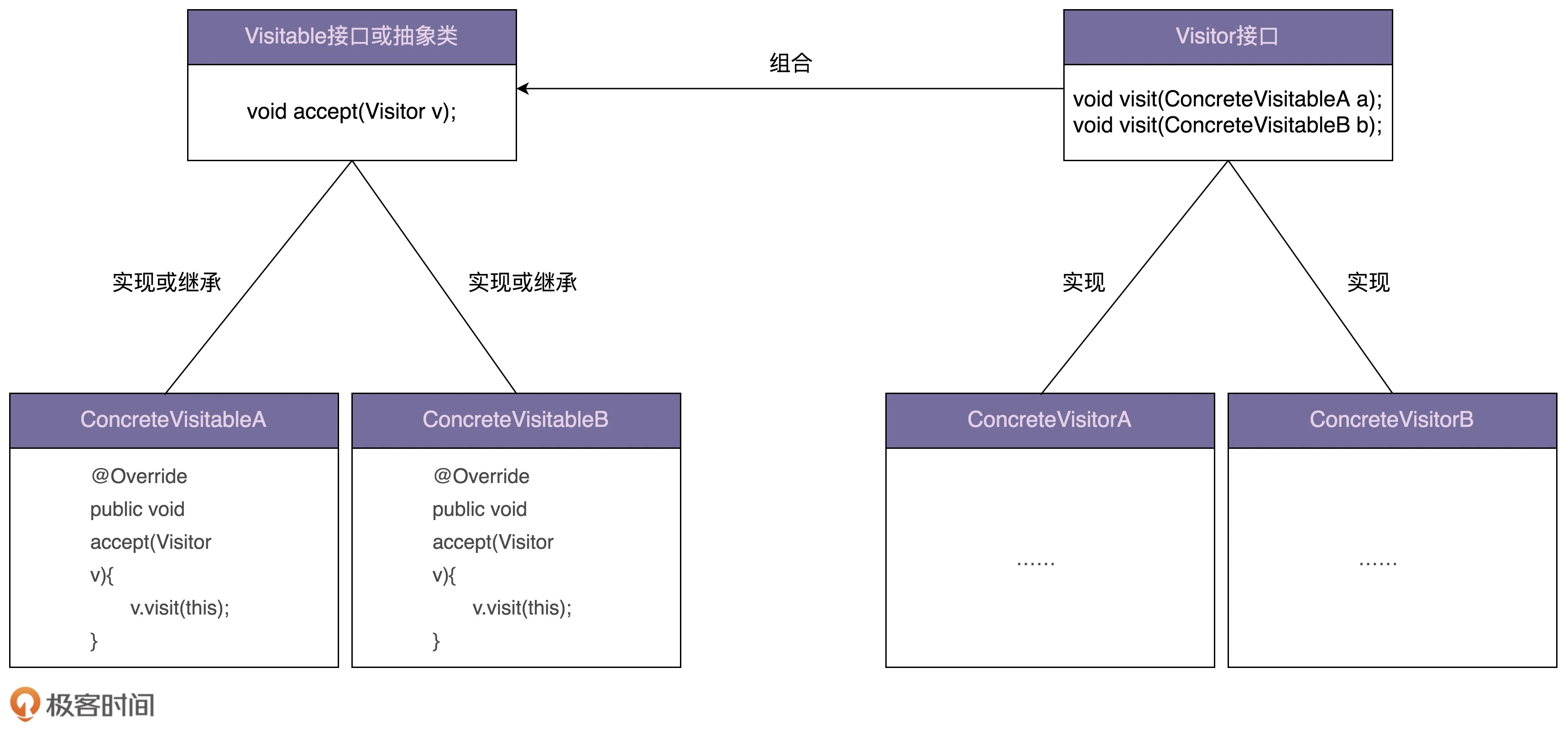 从代码实现上来看,回调和模板模式完全不同。回调基于组合关系来实现,把一个对象传递给另一个对象,是一种对象之间的关系;模板模式基于继承关系来实现,子类重写父类的抽象方法,是一种类之间的关系。