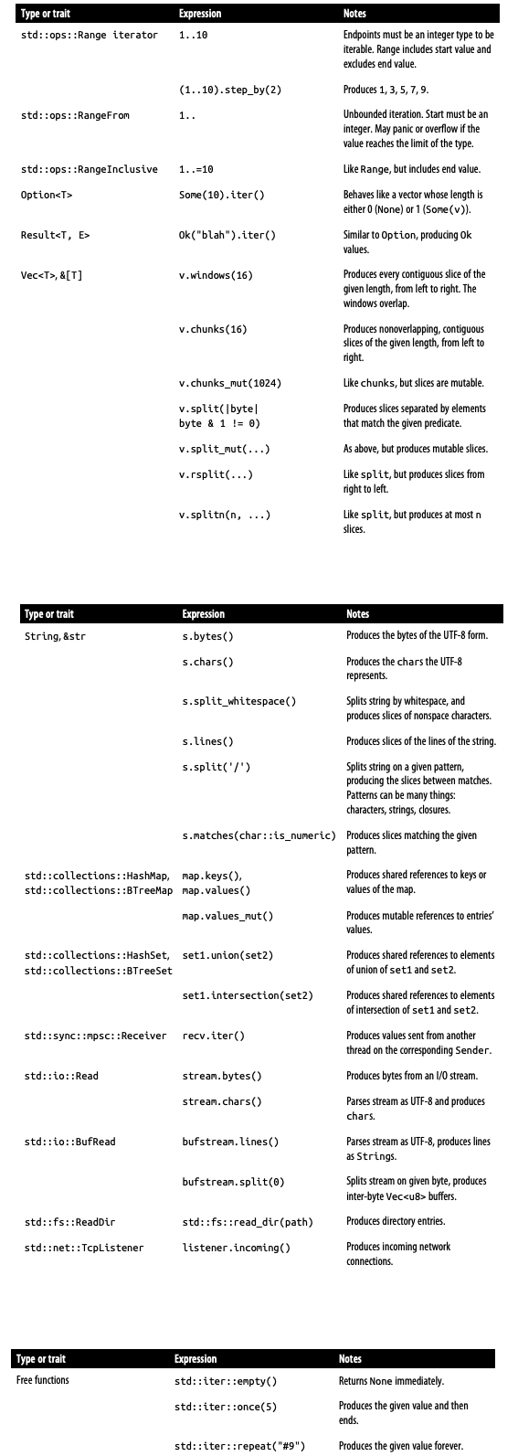 创建迭代器 Rust 标准库文档详细解释了每种类型提供的迭代器类型,但该库遵循一些通用约定来帮助定位并找到需要的东西。