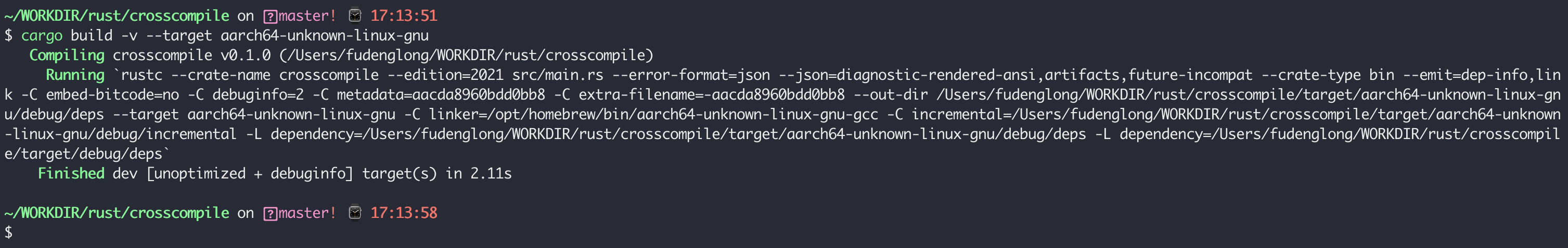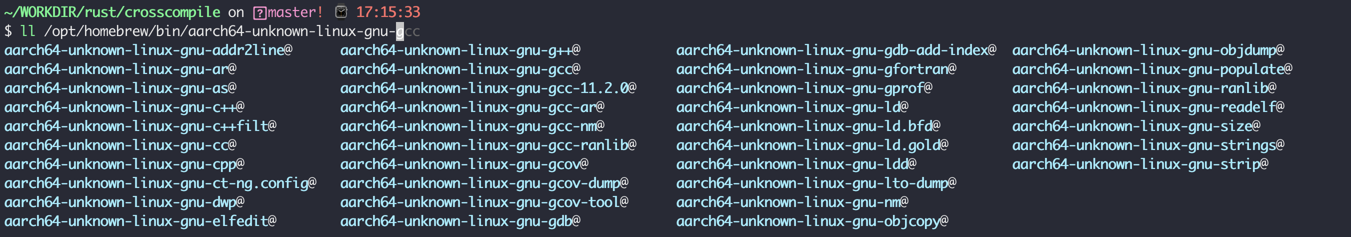 CARGO_TARGET_AARCH64_UNKNOWN_LINUX_GNU_LINKER=/opt/homebrew/bin/aarch64-unknown-linux-gnu-gcc cargo build -v –target aarch64-unknown-linux-gnu