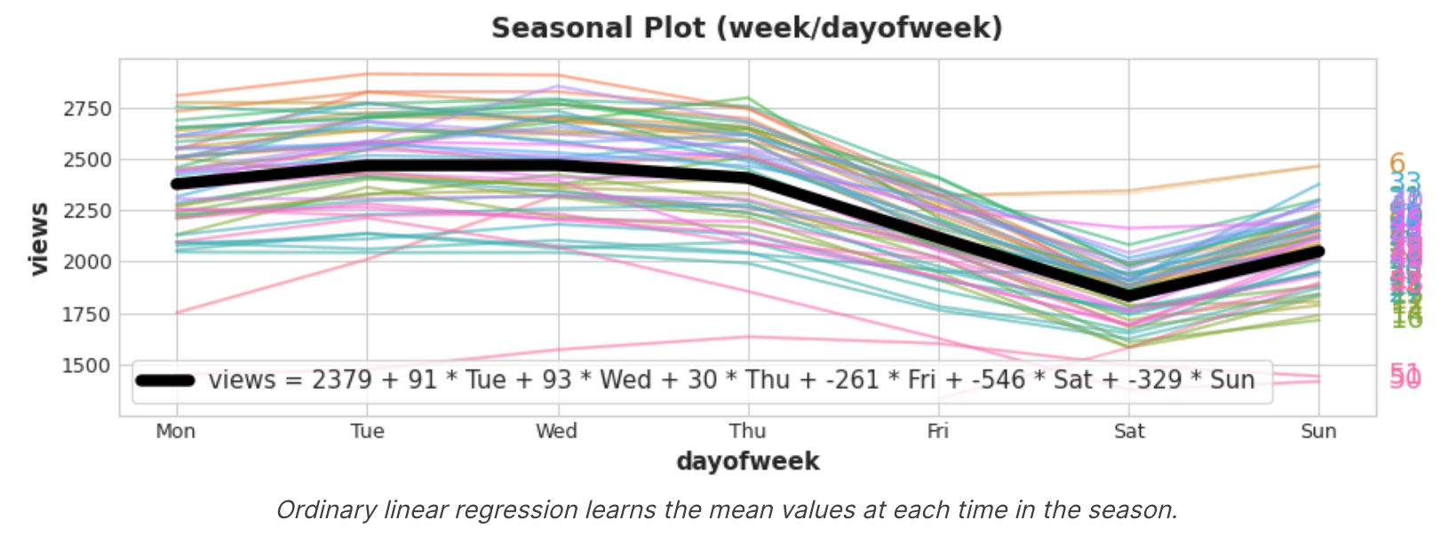 我们将学习两种模拟季节性的特征。第一种是指标,最适合观察很少的季节,例如每日观察的每周季节。第二种,即傅里叶特征,最适合具有大量观测的季节,例如每日观测的年度季节。