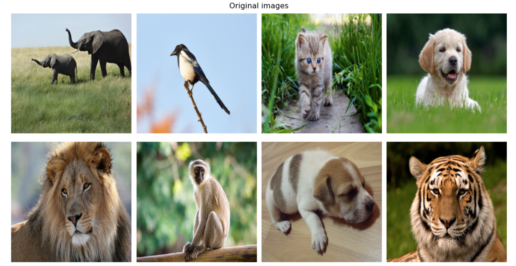 # Original images plot_images(images, batch_size=8, title="Original images")