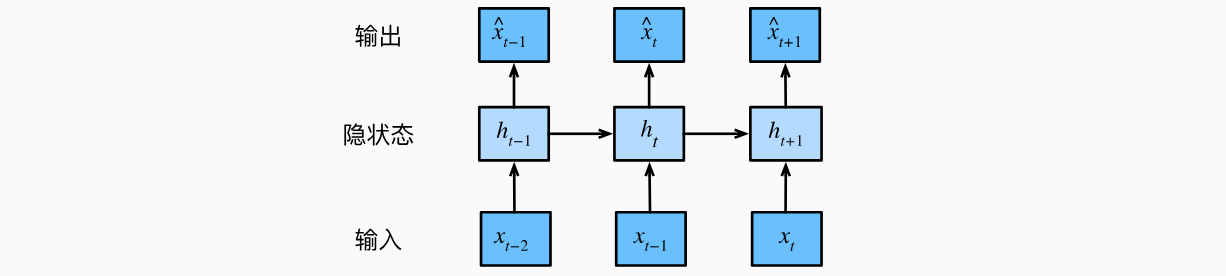 第二种策略,如下图所示,是保留一些对过去观测的总结 ,并且同时更新预测 和总结 。这就产生了基于 估计 ,以及公式 更新的模型。由于 从未被观测到,这类模型也被称为隐变量自回归模型 (latent autoregressive models)。