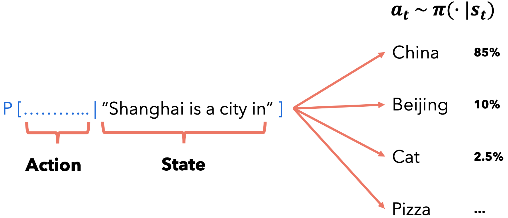 策略:对于语言模型来说,策略就是语言模型本身!因为它根据代理的当前状态模拟动作空间的概率: |