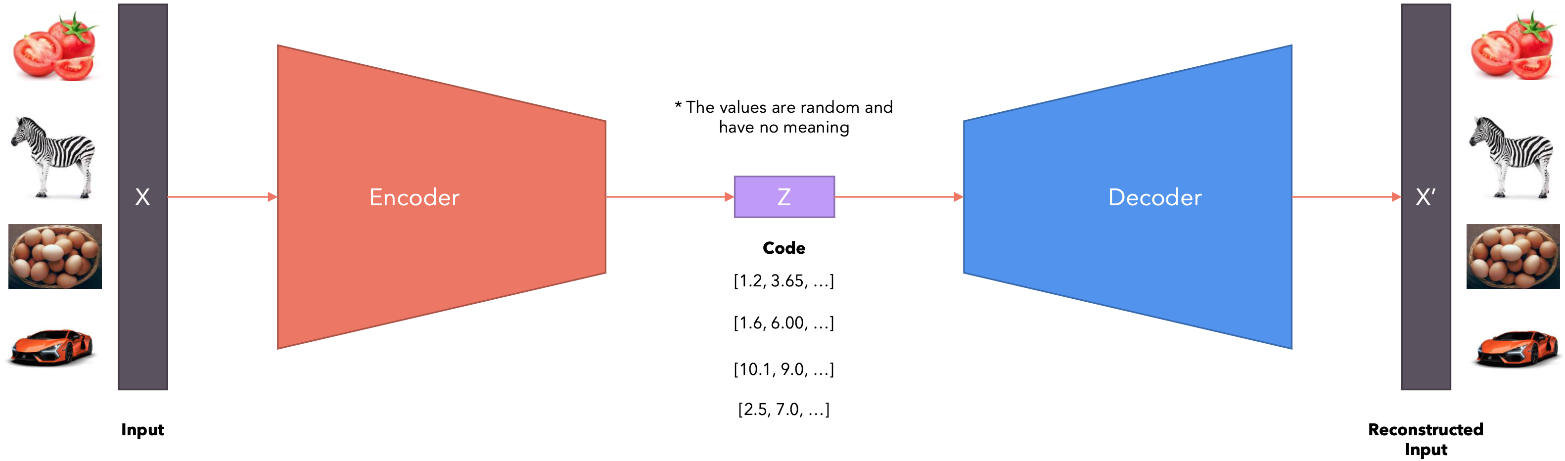Autoencoder存在什么问题?该模型学习到的代码毫无意义。也就是说,该模型可以将任意向量分配给输入,而向量中的数字不代表任何模式。该模型不会捕获数据之间的任何语义关系。