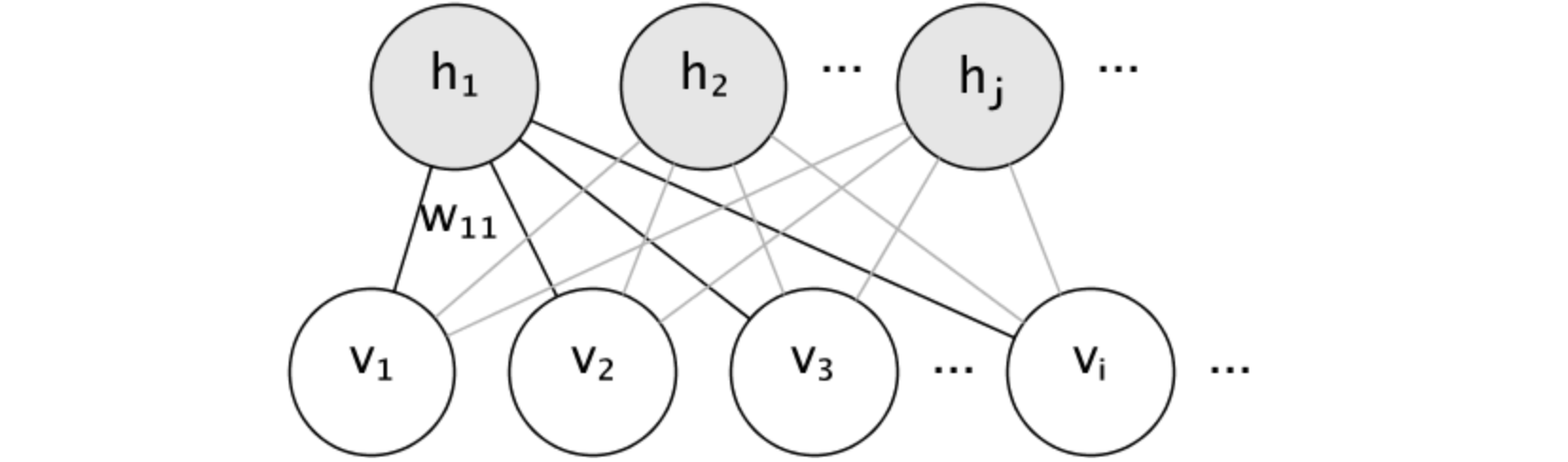 节点是随机变量,其状态取决于它们所连接的其他节点的状态。因此,该模型由连接的权重以及每个可见 和隐藏单元 的一个截距 (偏差)项参数化,为简单起见,图像中省略了该项。能量函数衡量联合分配的质量: 。在上面的公式中, 和 分别是可见层 和隐藏层 的截距向量 。模型的联合概率 根据能量定义: 。受限一词指的是模型的二分结构 ,它禁止隐藏单元 之间或可见单元 之间的直接交互。意味着: ,二分结构允许使用高效的块吉布斯采样 (Block Gibbs Sampling)进行推理。