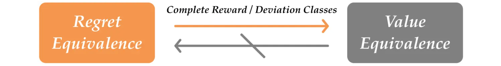 如果奖励函数类和偏差类都是完整的,那么遗憾等价性等同于价值等价性。当奖励函数类是完整的时,则